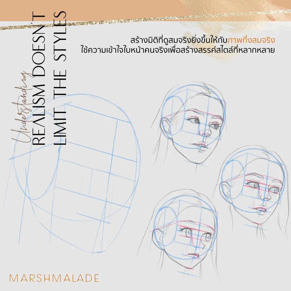 คอร์สเรียนวาดรูปใบหน้าคนให้มีพื้นฐานที่ดีจากใบหน้าสมจริง (Realism) ที่ช่วยให้เข้าใจมิติ โครงสร้าง รวมถึงเพิ่มความถูกต้องสมจริง ให้กับงานวาดใบหน้าคนแบบกึ่งสมจริง (Semi-Realism)