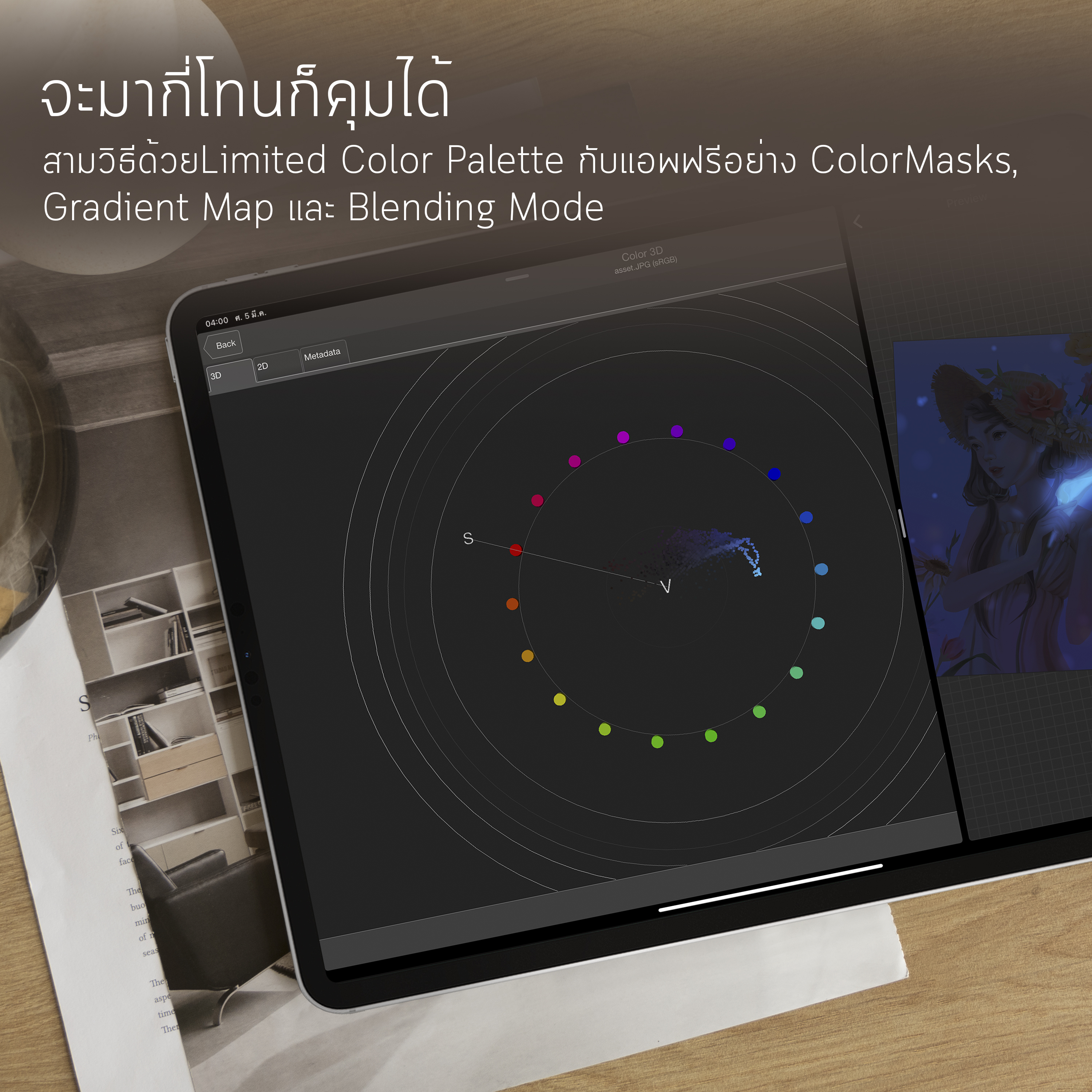 พร้อมทั้งสอนกระบวนการคิดและการค้นหาสไตล์ภาพการ์ตูนของตัวเอง รวมถึงการวาดภาพบุคคลกึ่งสมจริง และการระบายสีให้คุมโทนสวยงาม