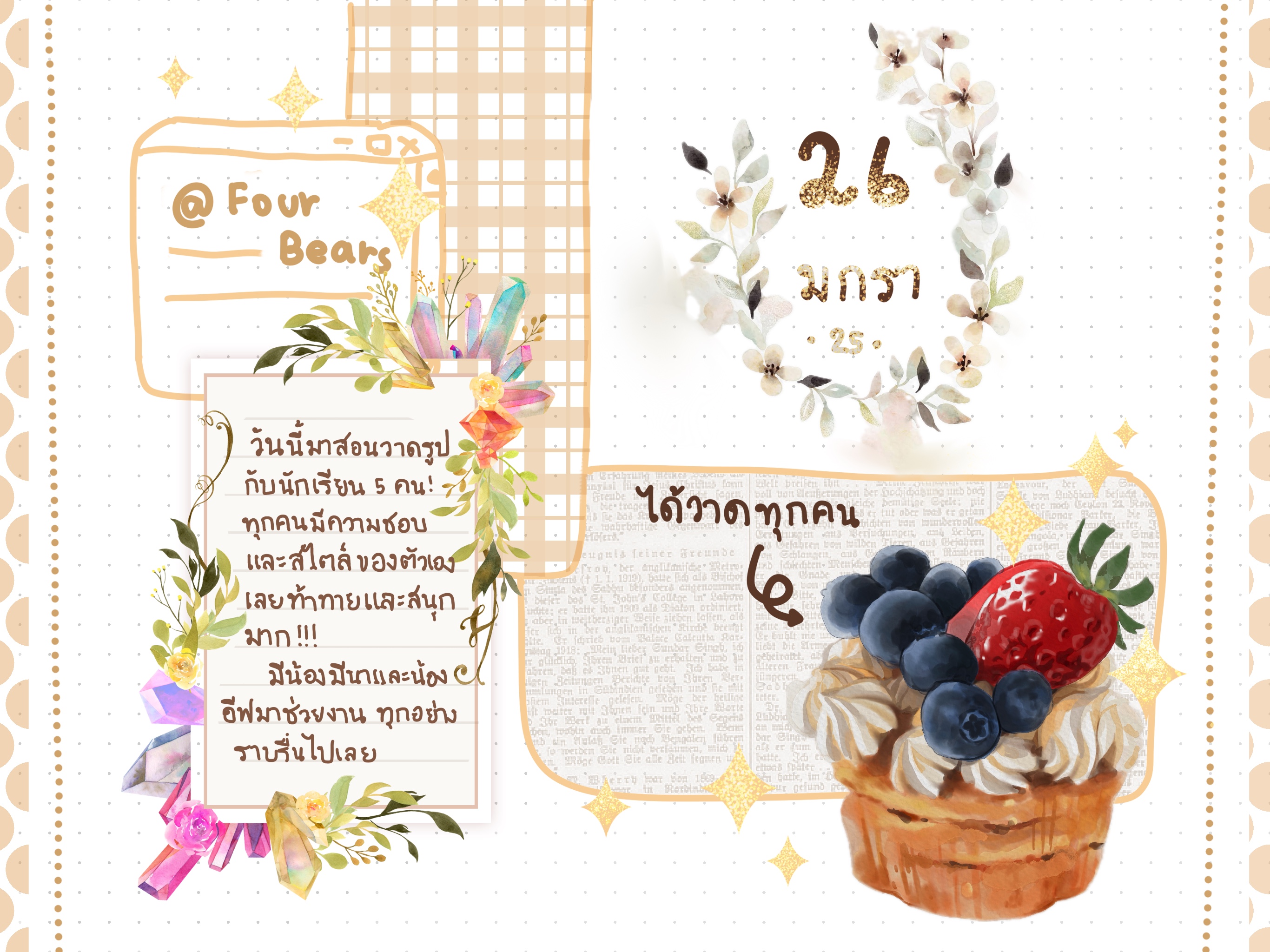 เหมาะสำหรับทุกเพศทุกวัย ไม่มีทักษะวาดรูปก็เรียนได้ เน้นการวาดรูปขนม อาหาร และฉากน่าประทับใจในสไตล์สนุก ๆ เบา ๆ