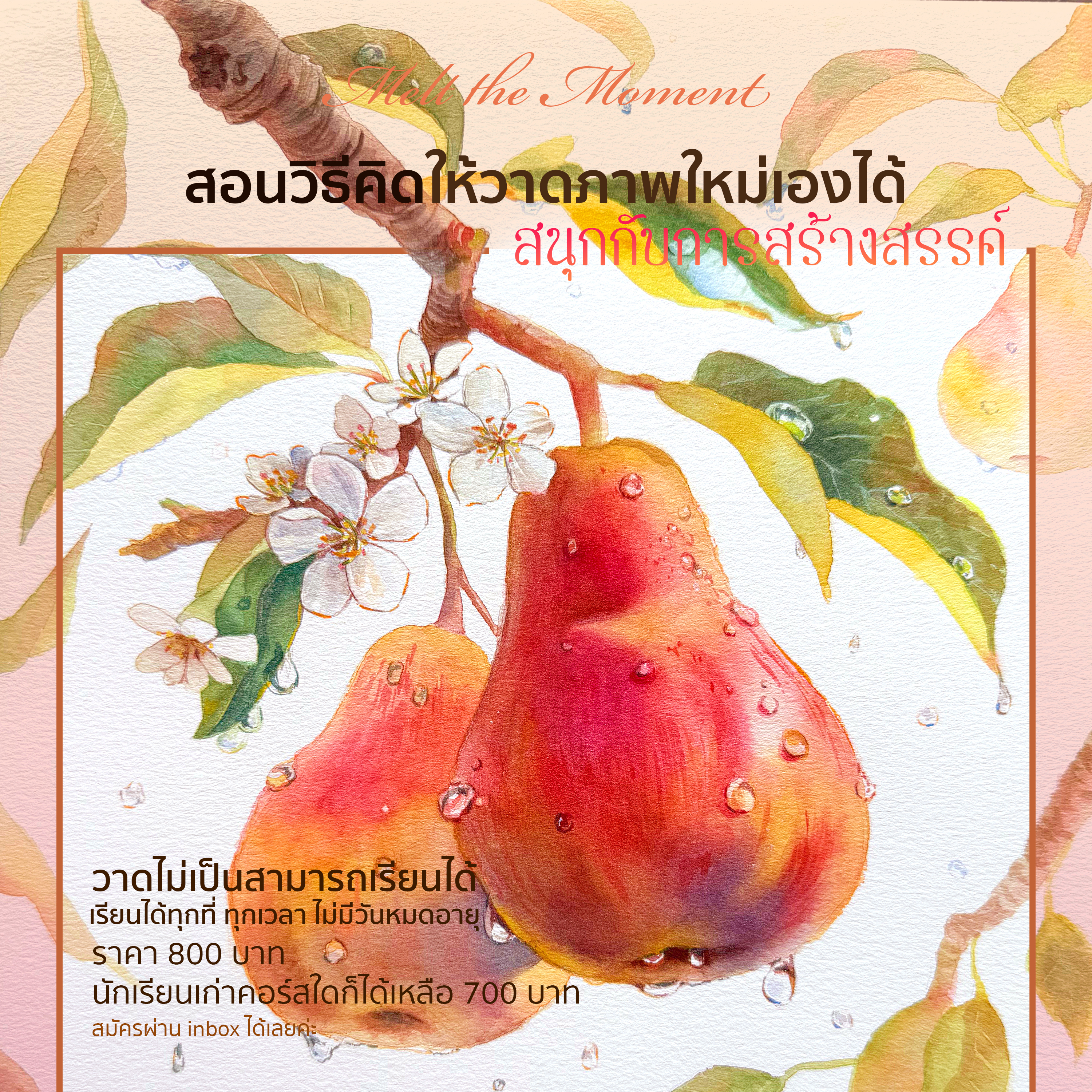 เรียนรู้ทฤษฎีสี การเลือกคู่สี การใส่ผิวสัมผัสผลไม้ ดอกไม้ ใบไม้ และ “หยดน้ำ” ที่ดูเหมือนจะยาก แต่เราจะทำให้คุณวาดได้จริง