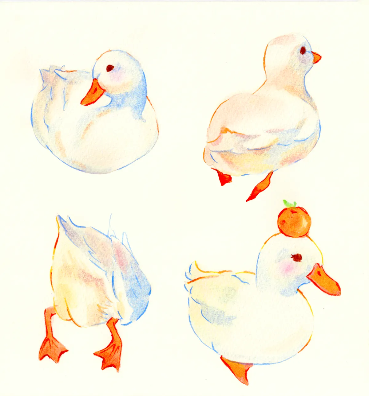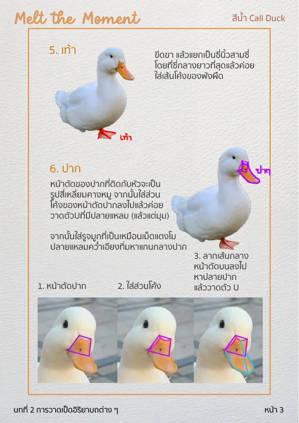 ให้คุณฝึกวาดน้องเป็ดในอิริยาบถต่าง ๆ และระบายภาพน้องเป็ดในสวนและฝูงน้องเป็ดล่องลอยอยู่บนผืนน้ำ